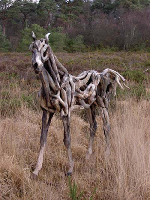 Horse made with wooden branches..