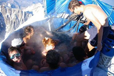 Obviously some of the above commenters aren't mountaineers! Way cool, wish I came across a jacuzzi at the top of a peak after climbing for 7 or 8 hours.