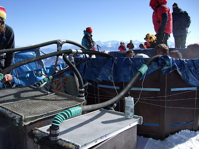 During almost one year we searched for means to make the system more reliable and lighter. All components had to be as light as possible still functioning in an oxygen depleted atmosphere, under wind and freezing temperatures. We soon realized that a Jaccuzzi at the top of Mont-Blanc would be just as much a social challenge than technological.