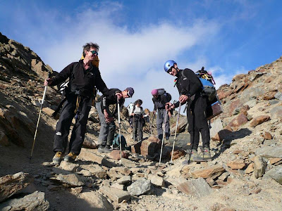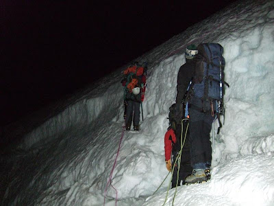 We had to find amongst our friends enough people that could climb Mont-Blanc by night, with a backpack of more than 45 lb and stay at the summit during several hours before descending. Additionally, since the weather had to be perfect, all needed to be able to leave with very short notice, possibly during the week. After four falls alerts, the long awaited weather window finally came, with no clouds and minimum wind...