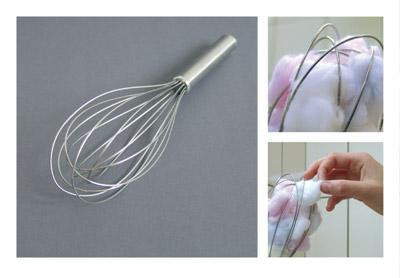 I thought it would be more obvious, but the eggbeater + cottonballs = cottonball dispenser