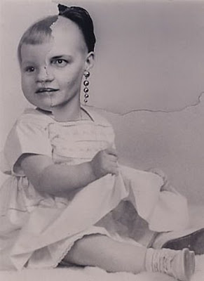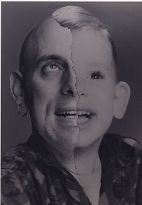 Really cool work by Bobby Neel Adams as he puts two pictures together of the same person one half is a child photo and the other the adult. See more of his work at Bobby Neel Adams.
