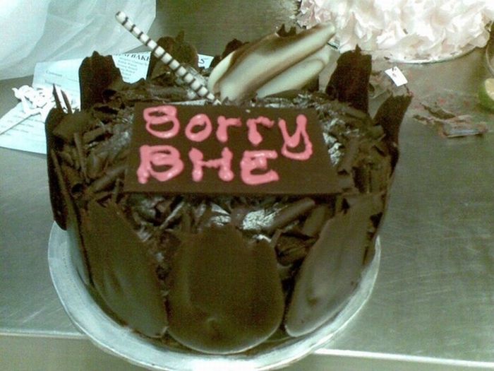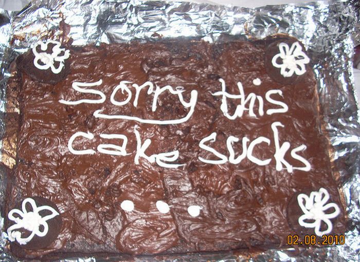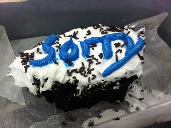 There are a million ways to say you’re sorry, but it's definitely more heartfelt when put on a cake. Even if the message is a little less than appetizing.