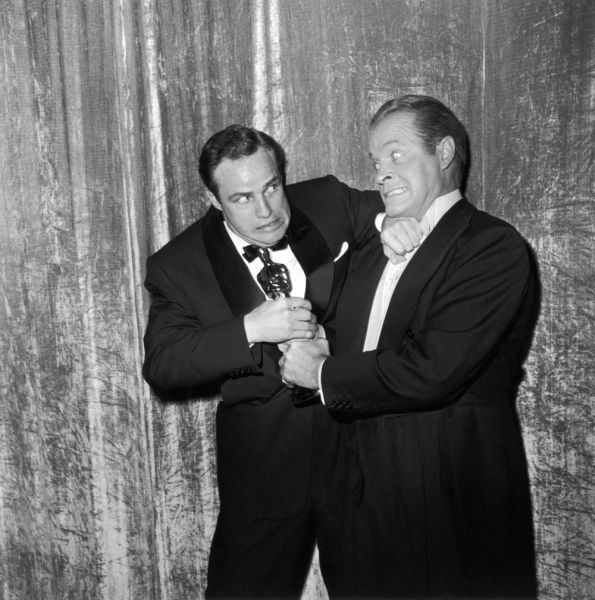 Audrey Hepburn and Grace Kelly backstage at the 28th Annual Academy Awards