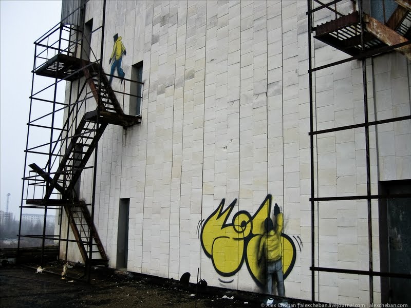It's been 25 years today since the Chernobyl disaster, but that doesn't mean people don't drop by the ghost town of Pripyat. One sign of human visitation is the graffiti street artists leave behind.