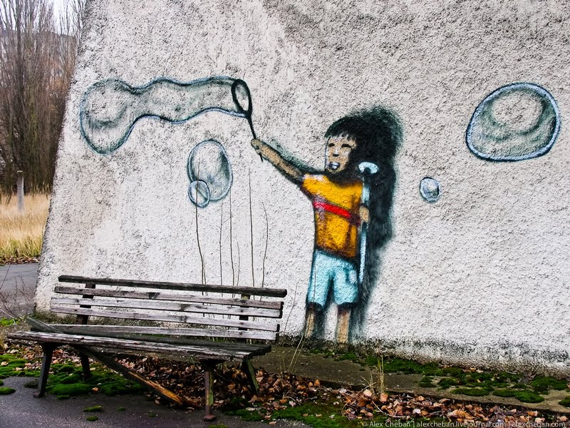 Even though Pripyat is by no means a hopping town, people are still dismayed by the street artists. Notes Cheban (via Google Translate):