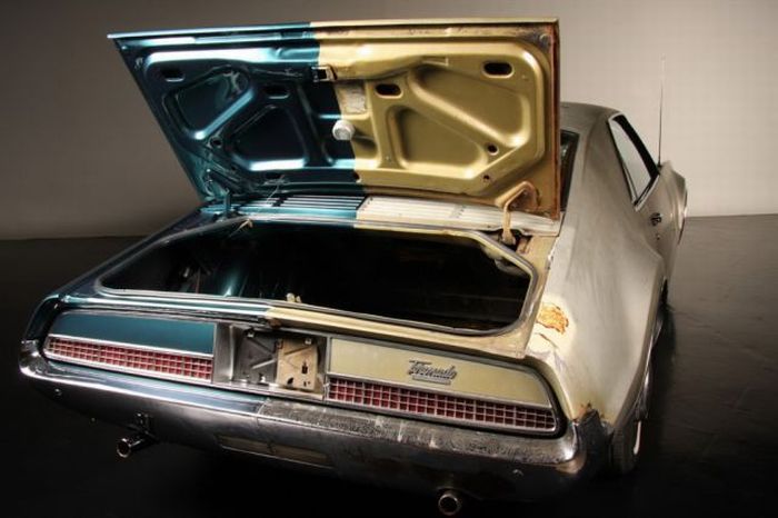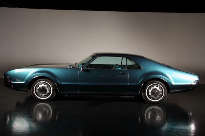 In a move that we could dare to call ingenious, Precision Restorations have taken a 1967 Oldsmobile Toronado screaming for a makeover, and have given an out-of-the-box look to exactly half of it, both inside and outside. Lift up the hood and you’ll find the same approach.