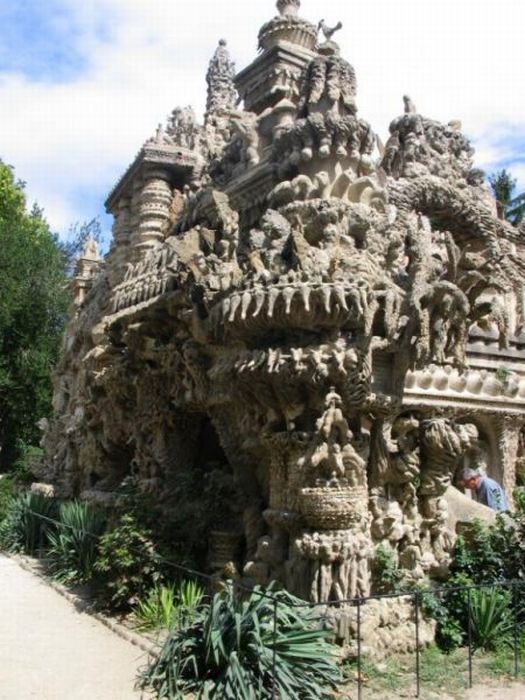 Ferdinand Cheval was a postman from France who spent 33 years building the “Ideal Palace” in Hauterives. The Palace is regarded as an extraordinary example of naïve art architecture. It all began when he was walking his post route and found a stone that he thought had an inspiring shape. Over the next 33 years Cheval collected stones during his walks, first puttting them in his pockets, then a basket. and finally a wheelbarrow. He spent the first 20 years building the outer walls, binding the stones together with lime, mortar and cement.