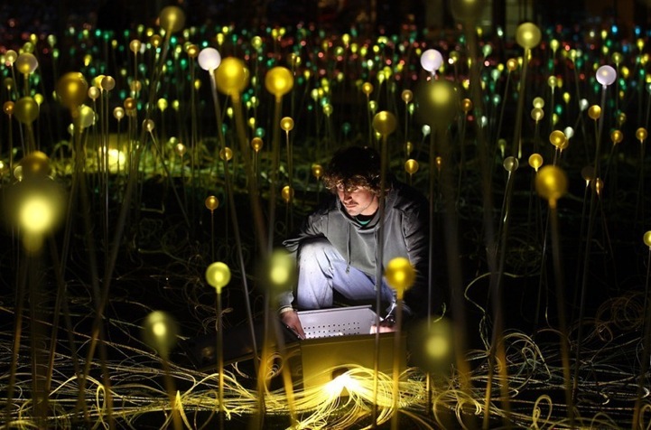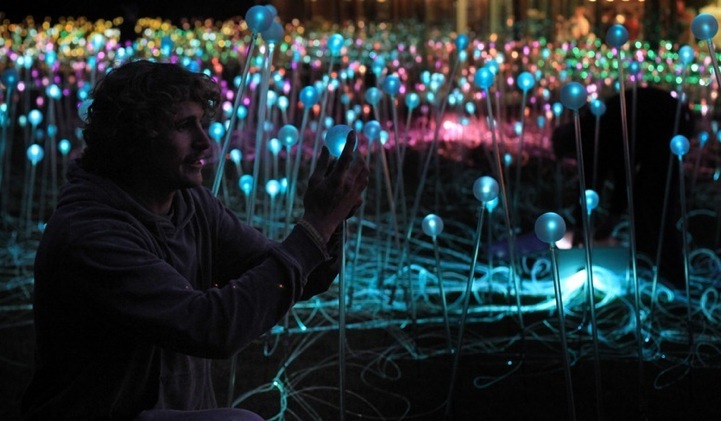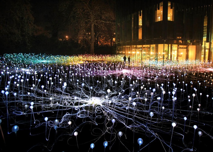Lighting artist Bruce Munro has unveiled his latest light installation at Holbourne Museum in Bath, England. The field of more than 5,000 Christmas lights atop acrylic stems sprawls across the museum grounds intending to mimic the way a barren desert bursts into bloom after a brief rainfall. The artist was inspired to create the fantastic installation after a walkabout in the Australian desert landscape after rainfall.