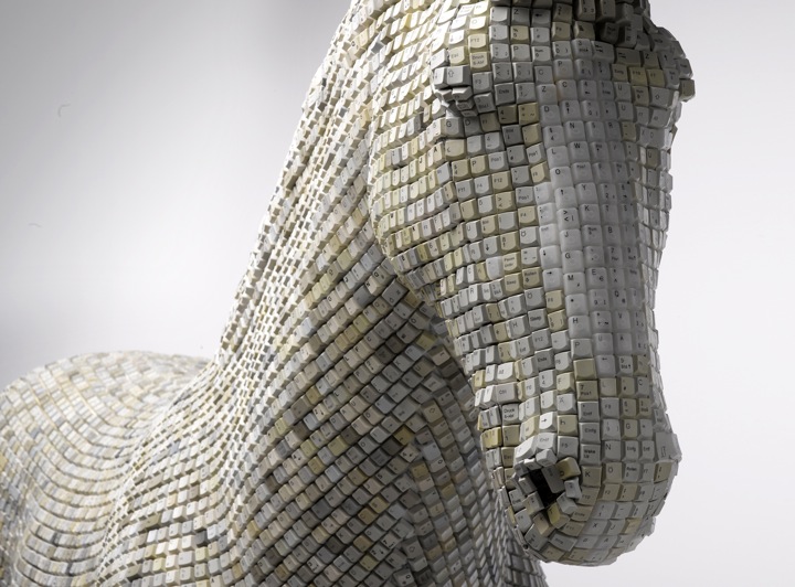 German artist Babis Cloud created this sculpture named ‘hedonism(y) trojaner’ out of resin and recycled computer buttons. The horse is well known from the greek mythology, where it granted the Greeks access to the city of Troja. Babis is making a reference to the negative aspects of technology (viruses, irrational dependence on computers).
