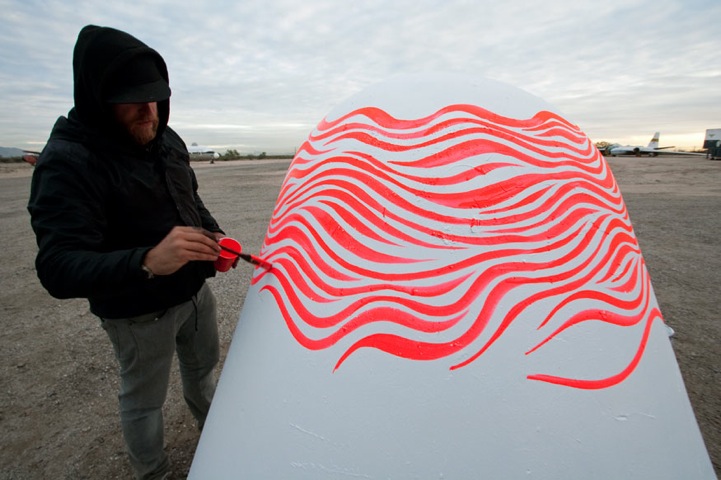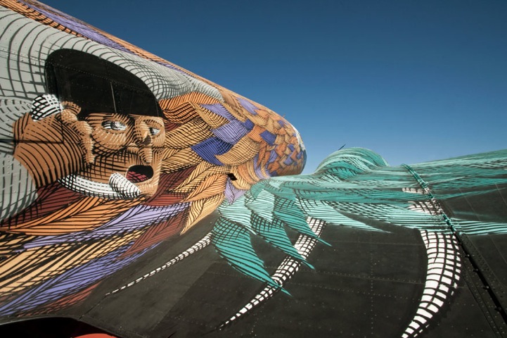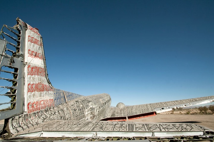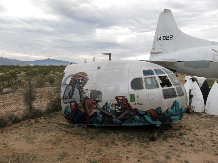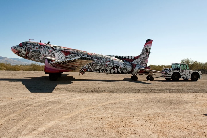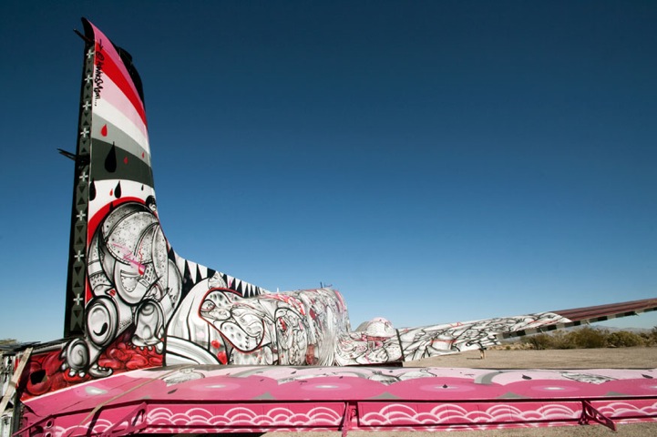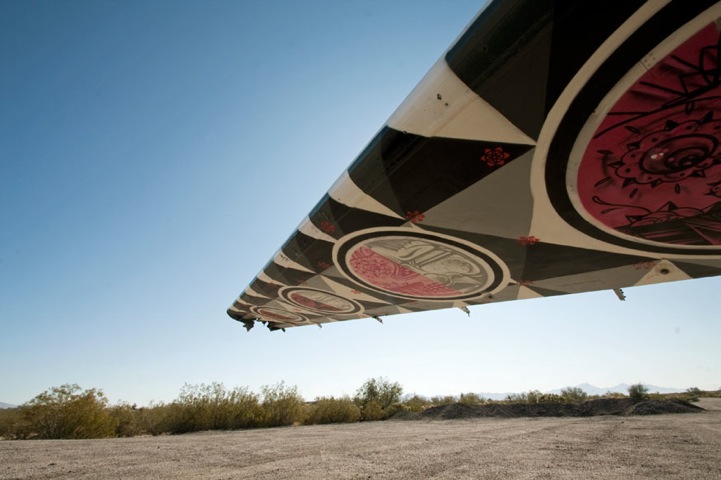The term "bone yard" refers to the remote, desolate parking stations for these behemoth, inactive vessels in the dessert. The first installment of this expanding series, called The Boneyard Project: Nose Job, was comprised of works from over a dozen artists. This current "part 2" of the project is titled The Boneyard Project: Return Trip and features more than 30 artists. The exhibit will be at the Pima Air & Space Museum in Tucson, Arizona from January 28 until May 31, 2012.