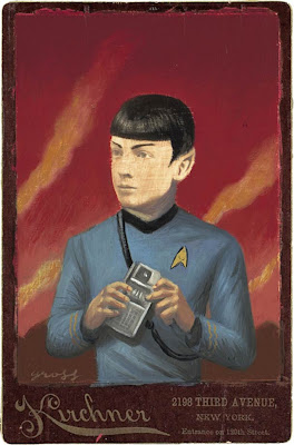 LA-based artist Alex Gross takes photographic images of antique Cabinet cards and then repaints them into portraits of pop culture personalities like Aquaman, Bride of Frankenstein and Godzilla. His work will be exhibited at Jonathan LeVine Gallery in New York City next month, so if you’re in town, stop by and support a great geek artist.