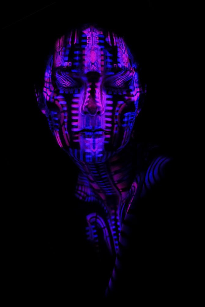 Each work of art is painted on a live model, paint-on-skin before it is photographed in high resolution. When you see these pictures you won't believe that these are real people and not some sci-fi computer made characters! But they are real as you and me! His Body Painting Art Work is photographed and displayed at Galleries around the world