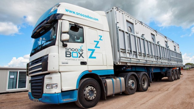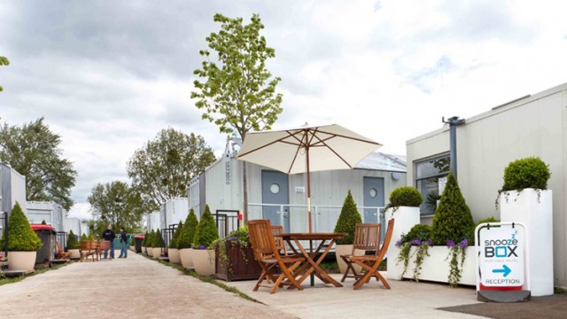 Snoozebox is a portable hotel consisting of shipping container living units that can be easily transported, stacked, and arranged into hotels of 40 to 400 plus rooms. Each container is outfitted with two to four rooms, and each room has its own bathroom, Wi-Fi and TV. Snoozebox is based in the UK, but they will set up a hotel anywhere in the world. Upon arriving at a location, the Snoozebox team can get a hotel up and running in about 48 hours. A 320 room Snoozebox hotel is currently in place in Essex, UK to house staff for the London Olympics.