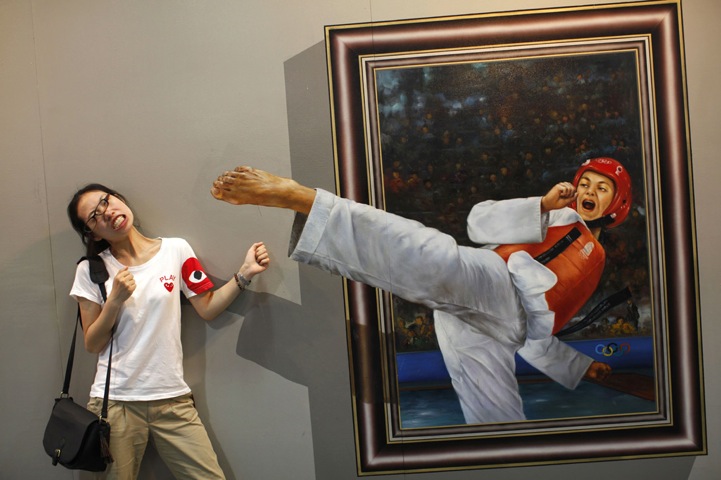 These fantastic optical illusions can be found in Hangzhou, China, currently on display as part of the 2012 Magic Art Special Exhibition, where the audience has the power to transform into the performer.